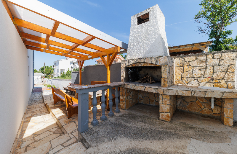 We have furnished 4 double rooms with modern furniture; there are two bathrooms, a summer kitchen, indoor and outdoor dining rooms, outdoor fireplace, bowling court and sandpit for children, so that staying with us can be very comfortable also for two families with children.